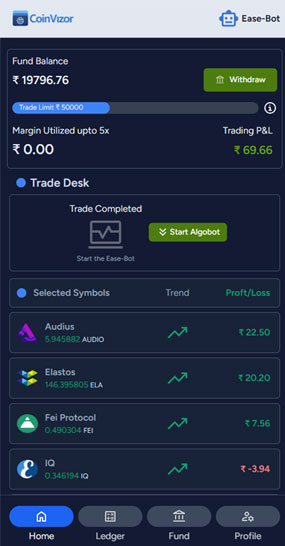 "CoinVizor has completely transformed the way I trade. The fully automatic robot is a game-changer—I just click start, and it does all the hard work. The fast payouts through UPI make it so convenient. Highly recommended!"
